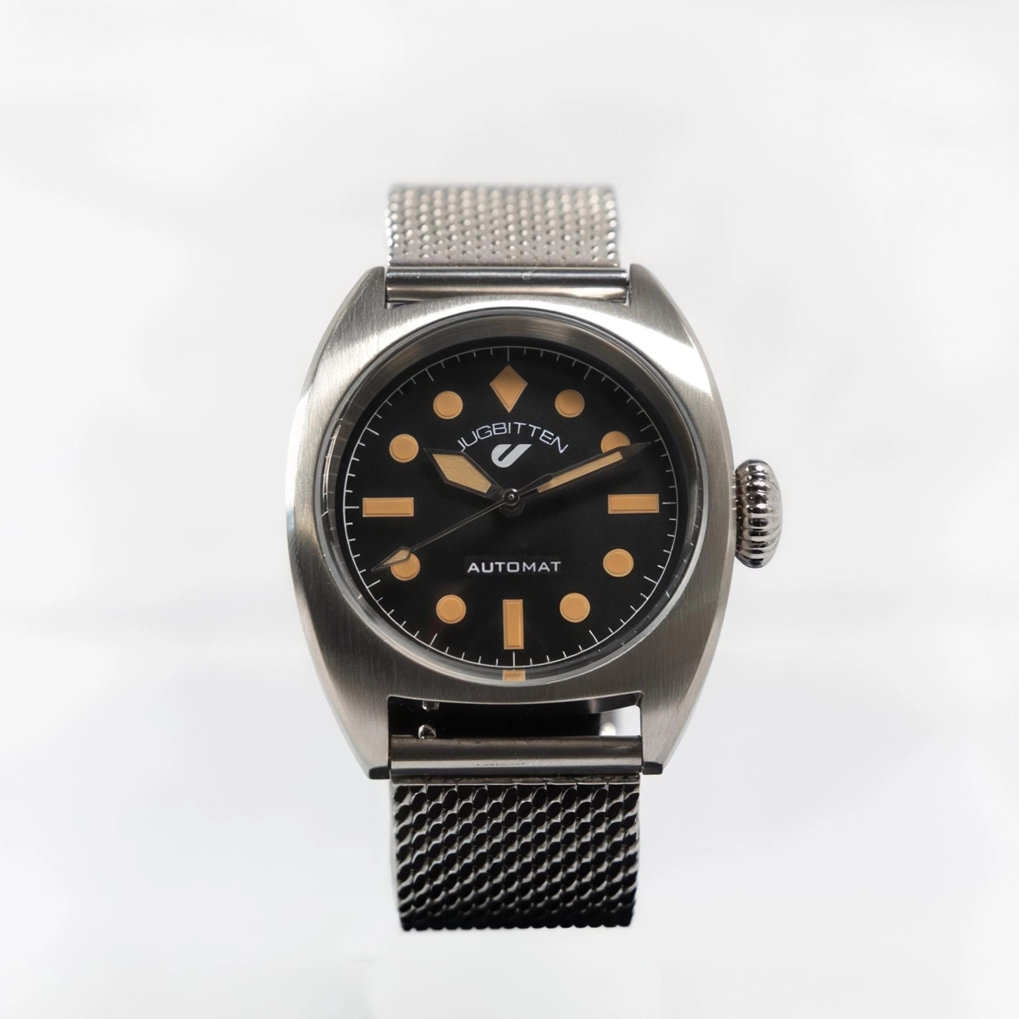 °363 is Jugbitten’s first watch model – Made from carefully selected components, assembled in Finland. Two size options, two bracelet options. A small batch is now available without a date window – for those who appreciate a clean, uncluttered dial.
